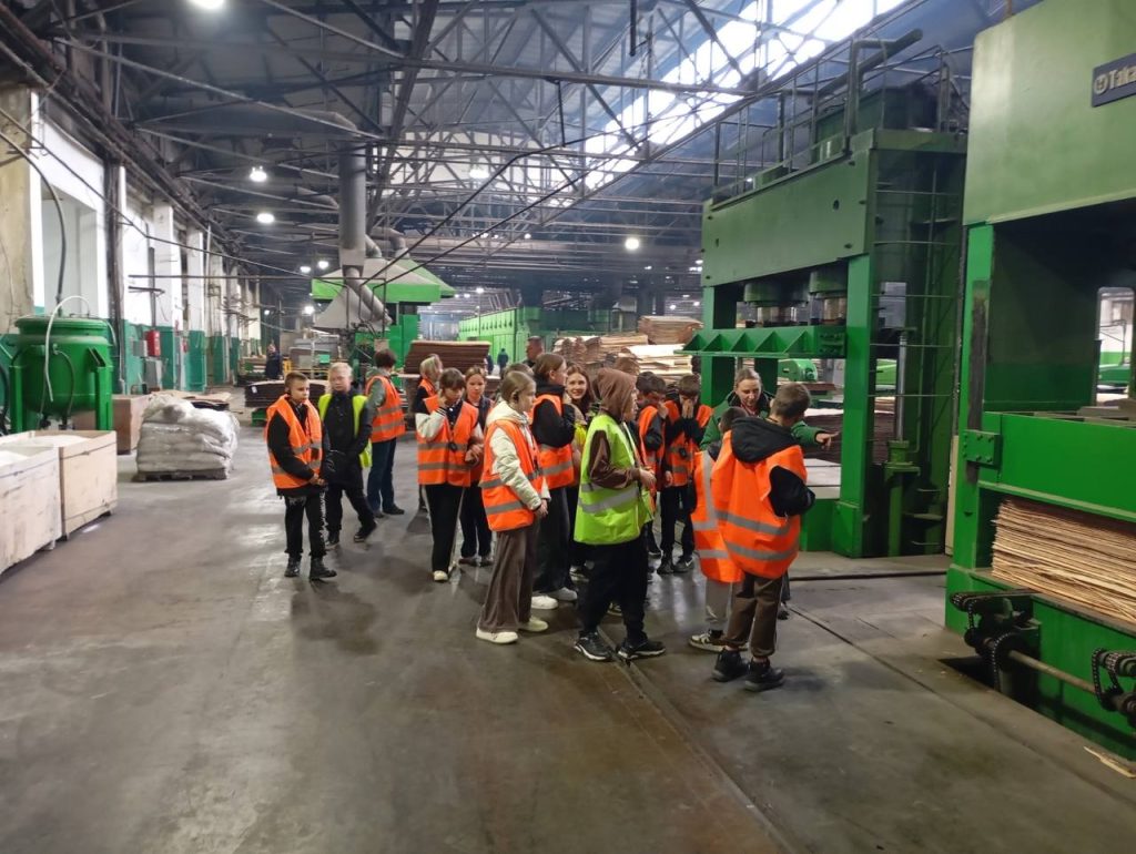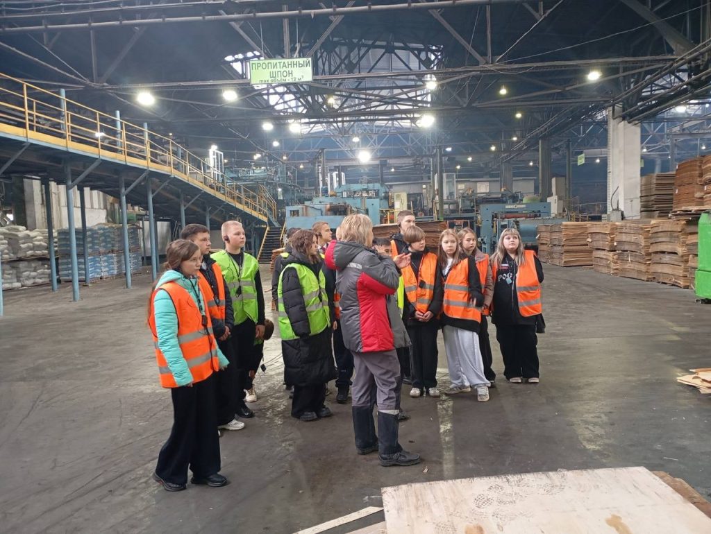 Ребята выслушали инструктаж по технике безопасности и посетили заводские цеха. Технологи рассказали школьникам, как происходит процесс производства фанеры, и показали готовую продукцию.